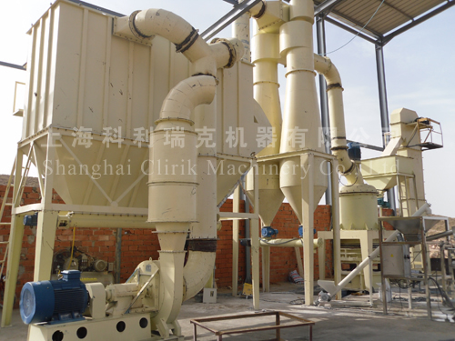 選粉機(jī)內(nèi)旋轉(zhuǎn)的葉輪使粗物料回落重磨,符合要求的細(xì)粉則隨氣流進(jìn)入旋風(fēng)集粉器并由其下部的卸料閥排出即為成品,而帶有少量細(xì)粉塵的氣流則經(jīng)過(guò)脈沖除塵器凈化后通過(guò)風(fēng)機(jī)和消聲器排出。